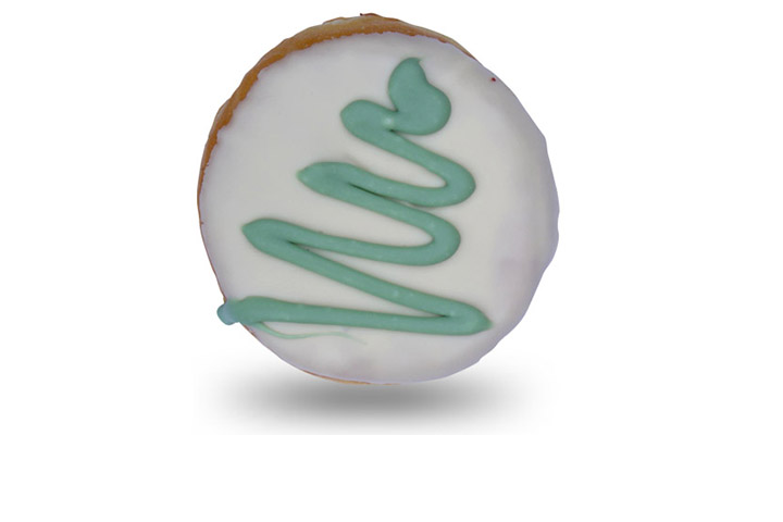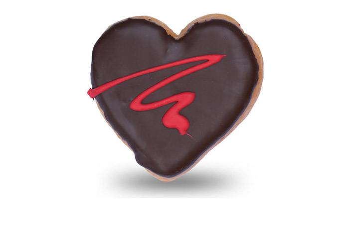 Decorada con Cobertura de chocolate blanco y cobertura roja